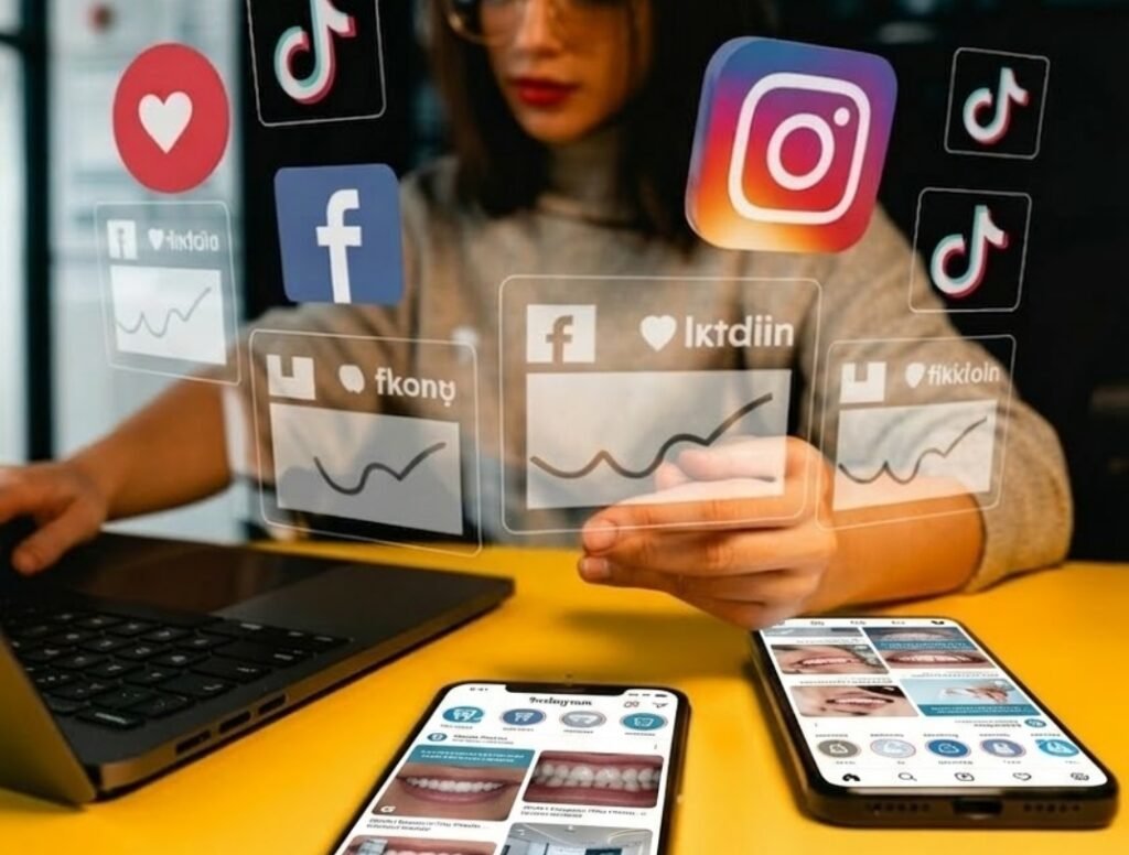 Social media builds visibility, trust, and engagement, attracting patients actively seeking dental treatments.